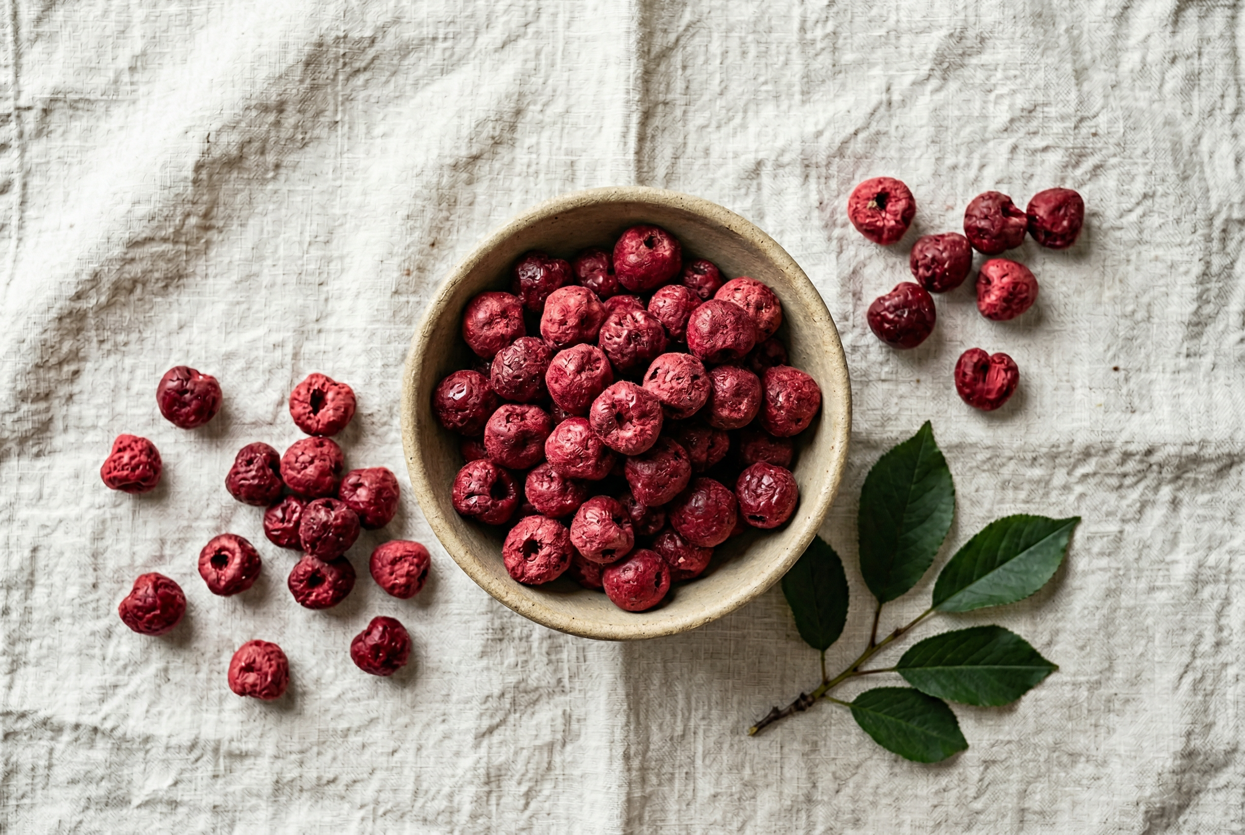 The key word is freeze-dried. Not cherry flavour. Not cherry juice concentrate. Not dried sweetened cherries.